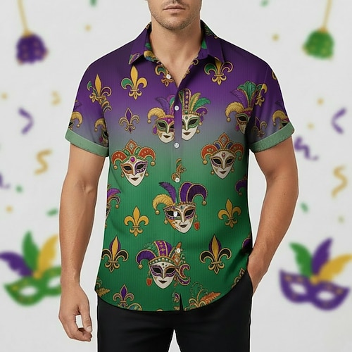 Karneval Mardi Gras 2026 Clown Narr Karneval Bluse / Hemd Hawaiihemden Neuheit Lustig Erwachsene Herren Karneval Lässig Party Einfaches Karnevalskostüm Verkleiden