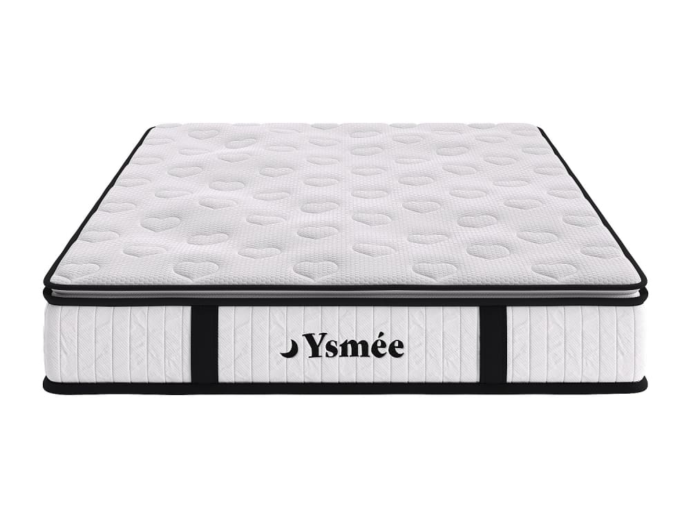 Vente-unique Ensemble complet literie déco tête de lit encadré bois + sommiers coffre + matelas + surmatelas - 180 x 200 cm - Tissu - Gris clair - SIAKI de YSMÉE