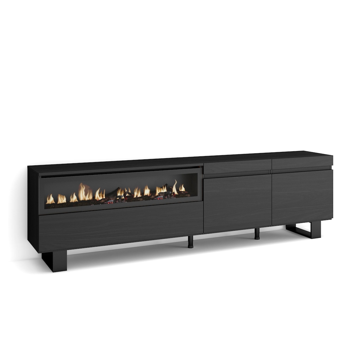SKRAUT HOME Wohnzimmer TV-Schrank, Viel Stauraum, 200x35x57cm, Für TV-Geräte bis 80“, Elektrischer Kamin, Industriedesign, Moderner Stil, Schwarz - 48_6