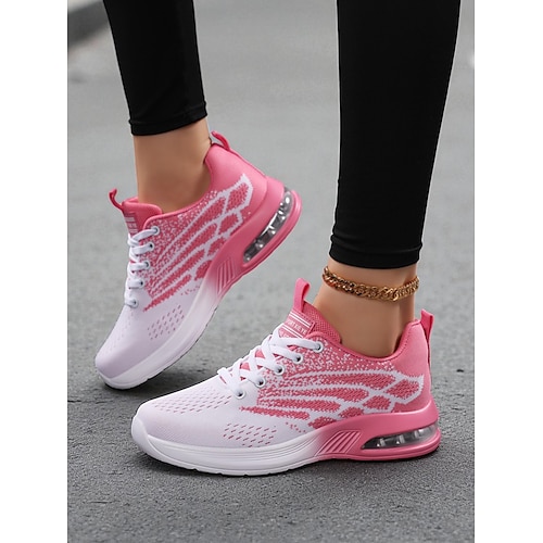 scarpe da corsa Flyknit arancioni brillanti da donna: scarpe da passeggio traspiranti con lacci per fitness, viaggi e commissioni quotidiane