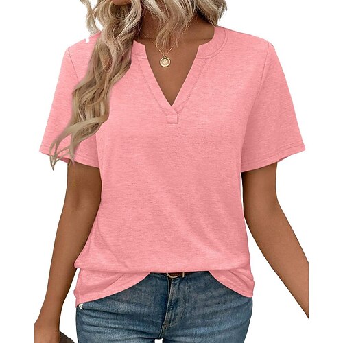 Per donna Maglietta Semplice Moda Classico Casual Manica Corta Scollo a V Top Regolari Quotidiano Uscire Weekend Nero Bianco Rosa Viola Verde Estate Primavera