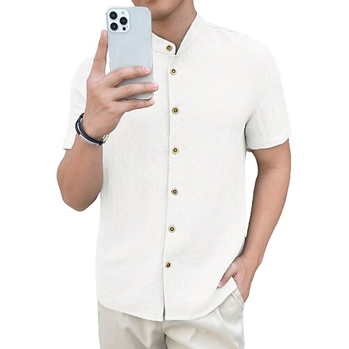 Per uomo Tessuto Camicia di Seersucker Camicia Jacquard Nero Bianco Rosso Kaki Azzurro Manica Corta Semplice Collo alla coreana Bavero Casuale Quotidiano Bottoni Abbigliamento Streetwear Casual