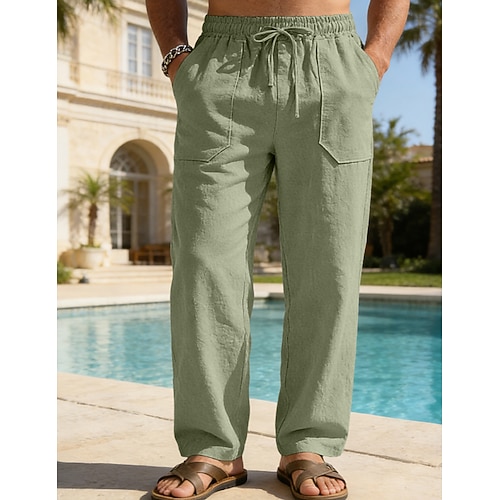 Per uomo Pantaloni di Lino Pantaloni Estivi Pantaloni da Spiaggia Coulisse Tasca Semplice Comodità Traspirante Lunghezza intera Quotidiano Casa All'aperto Vacanza Semplice Verde militare Nero