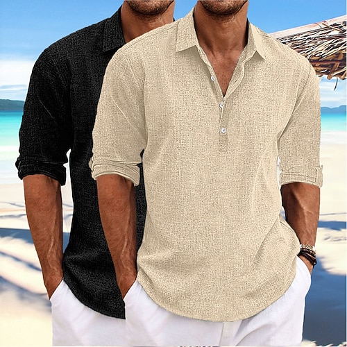 Per uomo Camicia Camicia di lino Camicia popover Camicia casual Camicia di cotone Semplice Vacanza Camicia hawaiana Nero Bianco Rosa Arancione Manica Lunga Colletto alla coreana Primavera Autunno