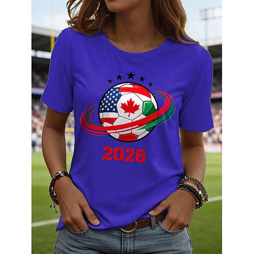 Per donna Maglietta Stampato Grafico Squadra di calcio Elegante Classico Casual Manica Corta Girocollo Top Regolari Quotidiano Blu Nero Bianco Rosso Estate Primavera