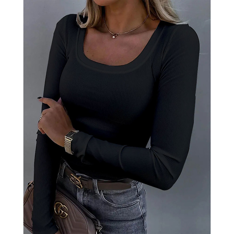 Women's T Shirt Solid Color Plain Basic Long Sleeve U Neck Regular Tops Daily Black White Pink Spring Fall
