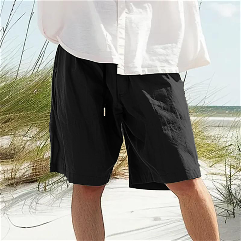 Men's Linen Shorts Summer Shorts Beach Shorts Pocket Drawstring Elastic Waist Plain Comfort Breathable Short Holiday Vacation Beach Hawaiian Boho ArmyGreen Black