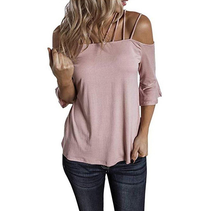 Women's T Shirt Plain Fashion Modern Casual Long Sleeve Off Shoulder Regular Tops Daily Weekend White Pink Gray Summer Spring Fall