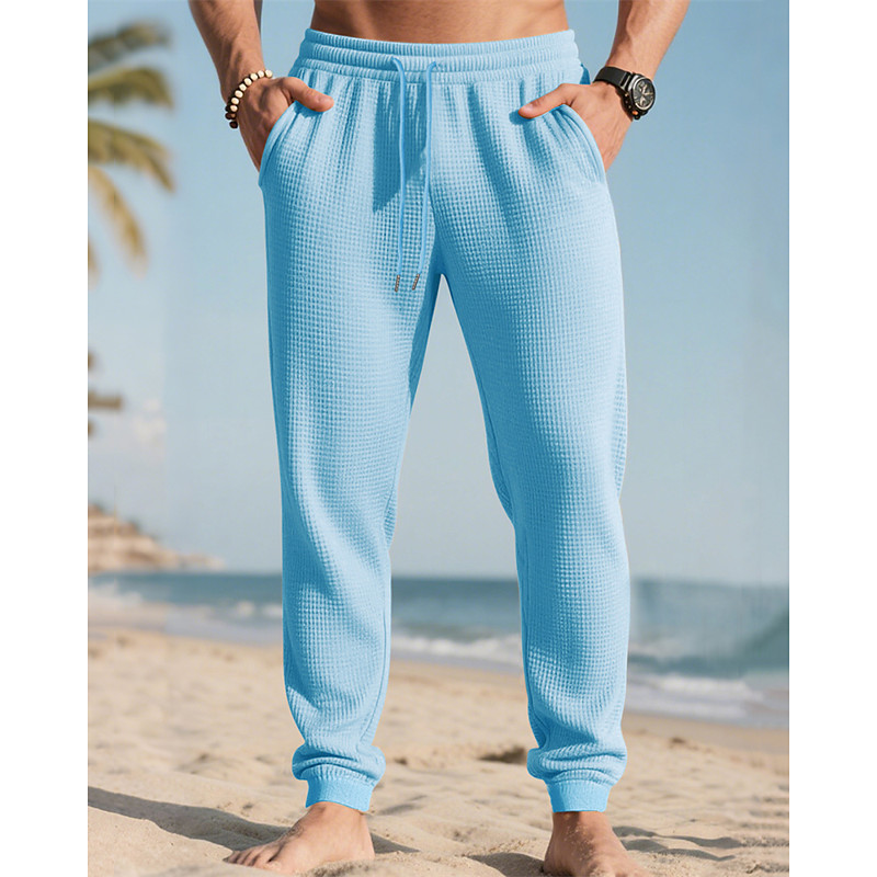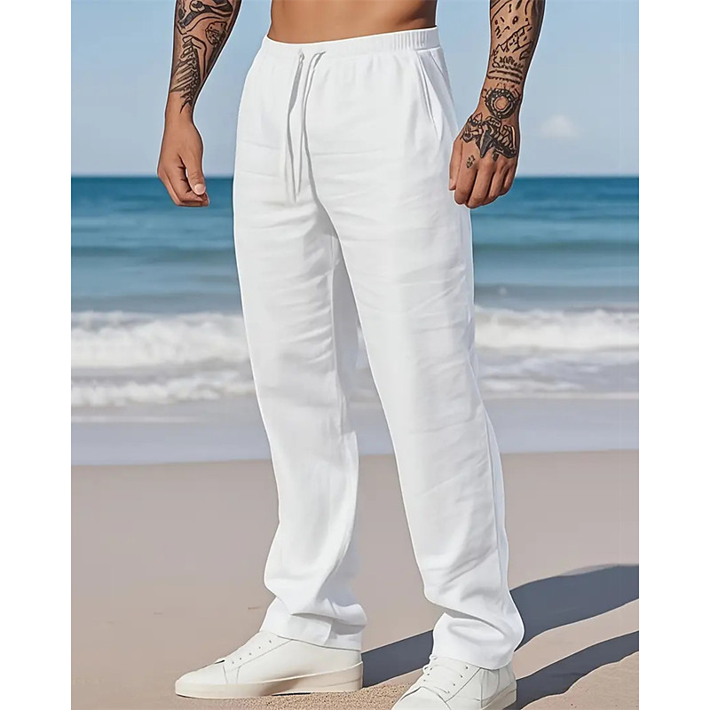 Men's Linen Pants Trousers Summer Pants Drawstring Elastic Waist Plain Comfort Soft Daily Beach Fashion Simple Black White Micro-elastic