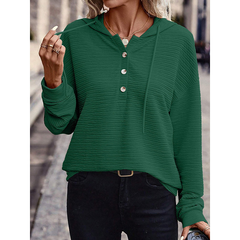 Women's Pullover Hoodie Sweatshirt Plain Casual Long Sleeve Hooded Regular Tops Street Dailywear Buttons White Pink Navy Blue Green Fall Winter