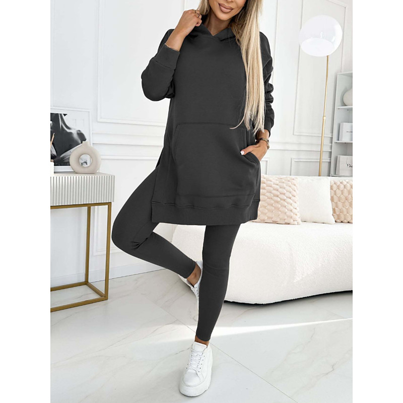 Women's Fashion Streetwear Hoodie Pants Sets Bolero Top Long Sleeve Hooded Plain Outdoor Casual Daily Blue Dark Grey Black Fall Regular Fit