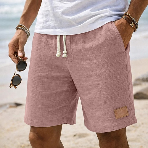 Per uomo Shorts Shorts di Lino Pantaloncini Estivi Coulisse Tasca Elastico in vita Semplice Comodità Morbido All'aperto Quotidiano Uscire Moda Casual Nero Bianco
