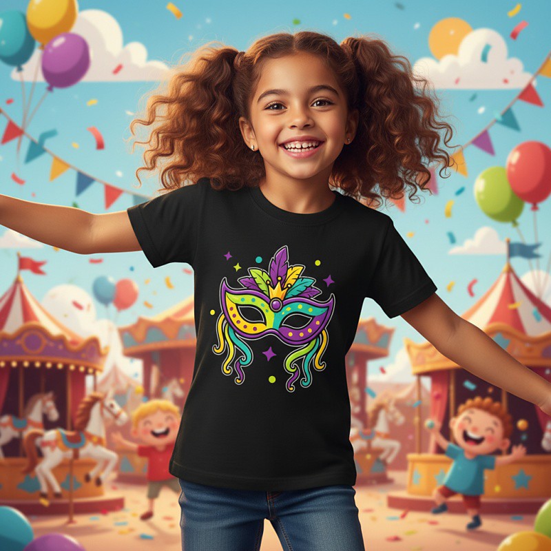 100% Cotton Mardi Gras 2026 Carnival Kids Girls' Blue Black White Graphic Mask T shirt Tee Crew Neck Short Sleeve Vacation Sports Outdoor Dailywear Active Neutral Casual Printing Summer Spring