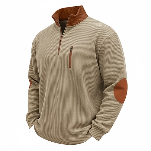 Per uomo Camicia di Velluto a Coste Maglietta Camicia a Maniche Lunghe Manica Lunga Con cerniera Autunno Inverno Tinta unica Blocco di colori Quotidiano Testurizzato Casual Con zip Oversize Ampio
