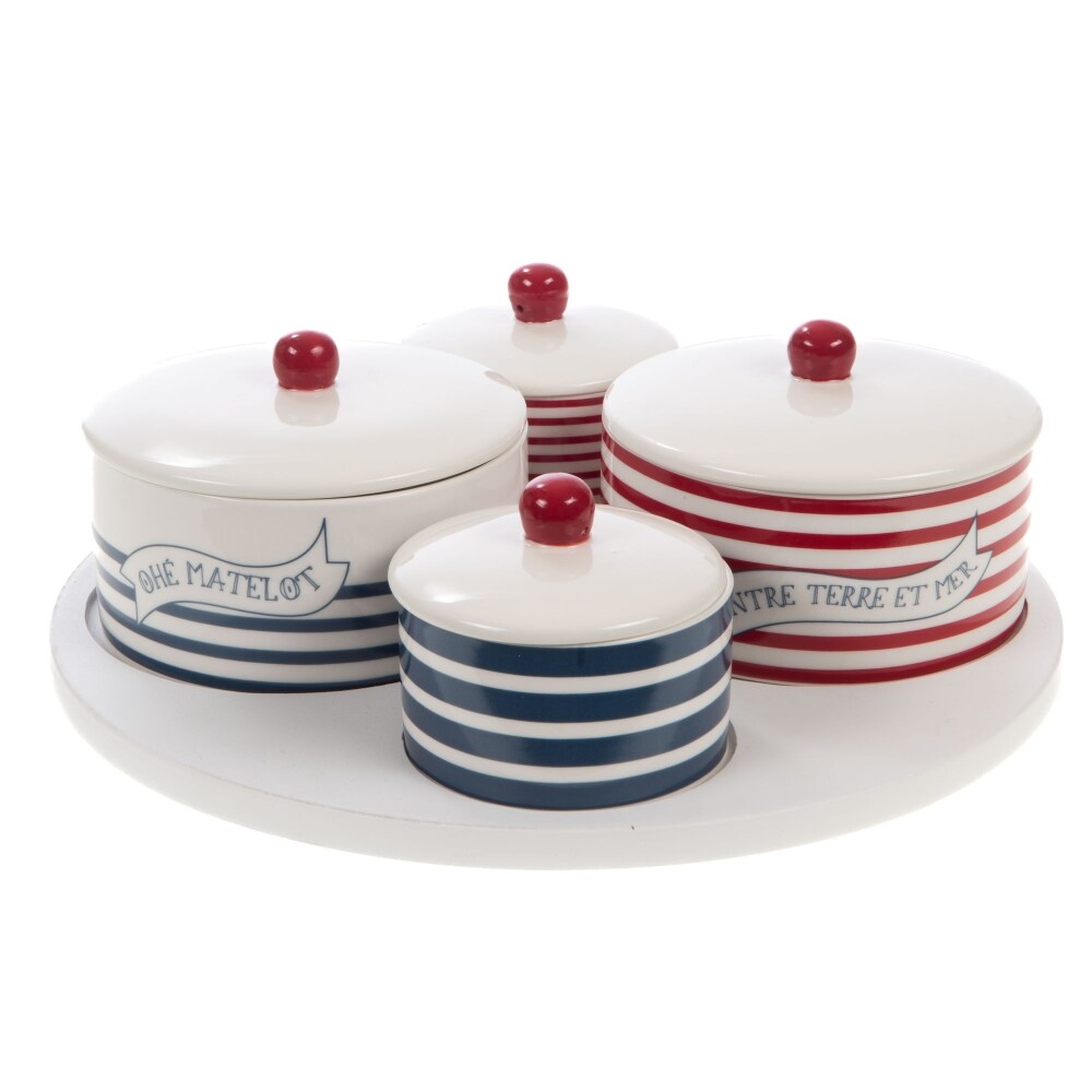 Tablett und seine 4 Schalen Marinière - Decor Rond Grès Amadeus 30x30 cm