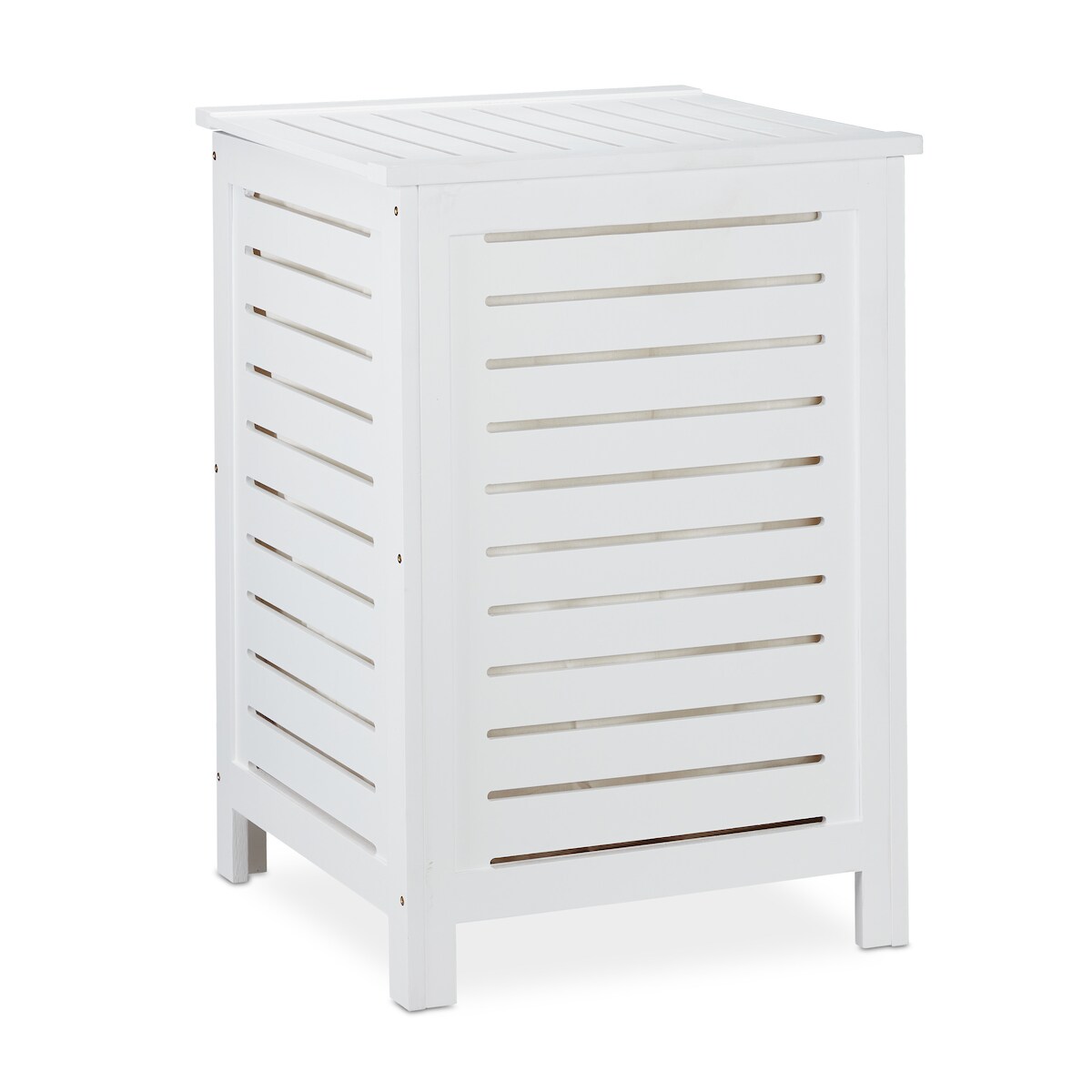 Relaxdays Wäschetruhe mit Deckel, 86 Liter, entnehmbarer Wäschesack, Kiefernholz, Wäschesammler 65,5 x 45 x 45 cm, weiß