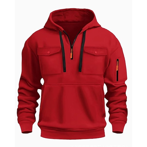 Per uomo Felpa con cappuccio Felpa con cappuccio e zip corta Nero Bianco Vino Verde militare Rosso Con Cappuccio Semplice Tasca Zip a un quarto Sport Outdoor Quotidiano Ferie Poliestere Streetwear