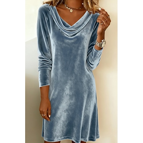 abito midi da donna, abito tubino, abito attillato, festa, compleanno, cocktail, quotidiano, vestibilità regolare, tinta unita, manica lunga, girocollo, blu, argento, rosso vino, nero, autunno inverno