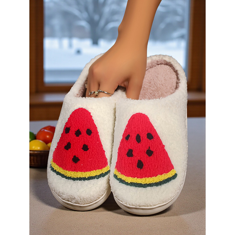 Women's Fleece Slippers with Cute Cherry Embroidery, Warm Indoor House Shoes for Christmas Winter Wear, Bedroom and Cozy Home Wear