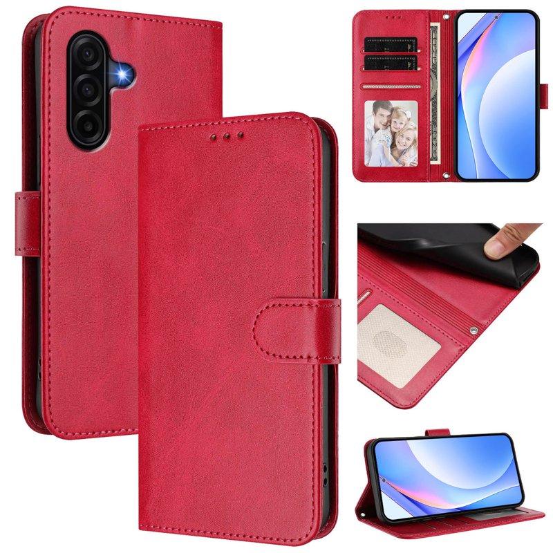 Samsung Galaxy A55 5G Plånboksfodral Magnetlås Konstläder Ställ - Röd