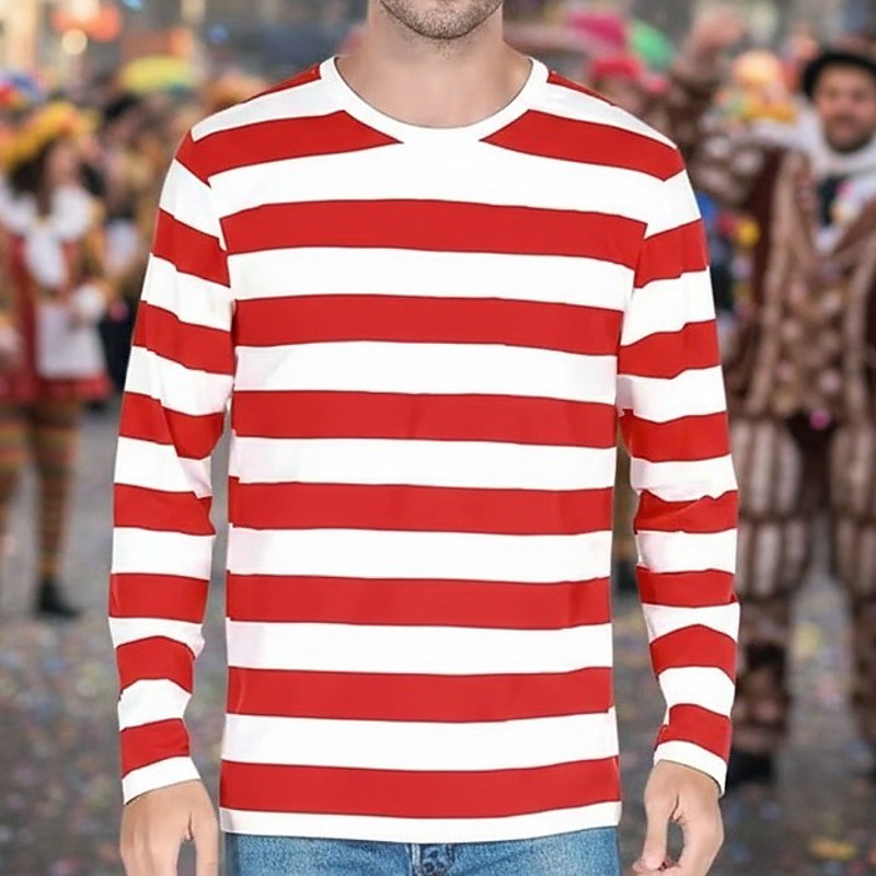 Carnival T-shirt Sweatshirt Striped Shirt White and Red Adults' Men's Carnival Performance Party Easy Carnival Costume Dress Up