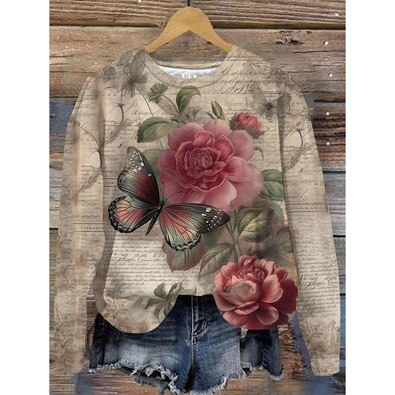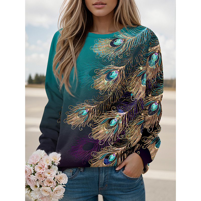 Women's Pullover Floral Print Fashion Casual Loose Fit Crew Neck Long Sleeve Inelastic Spring Fall Comfrt Breathable Soft Fabric