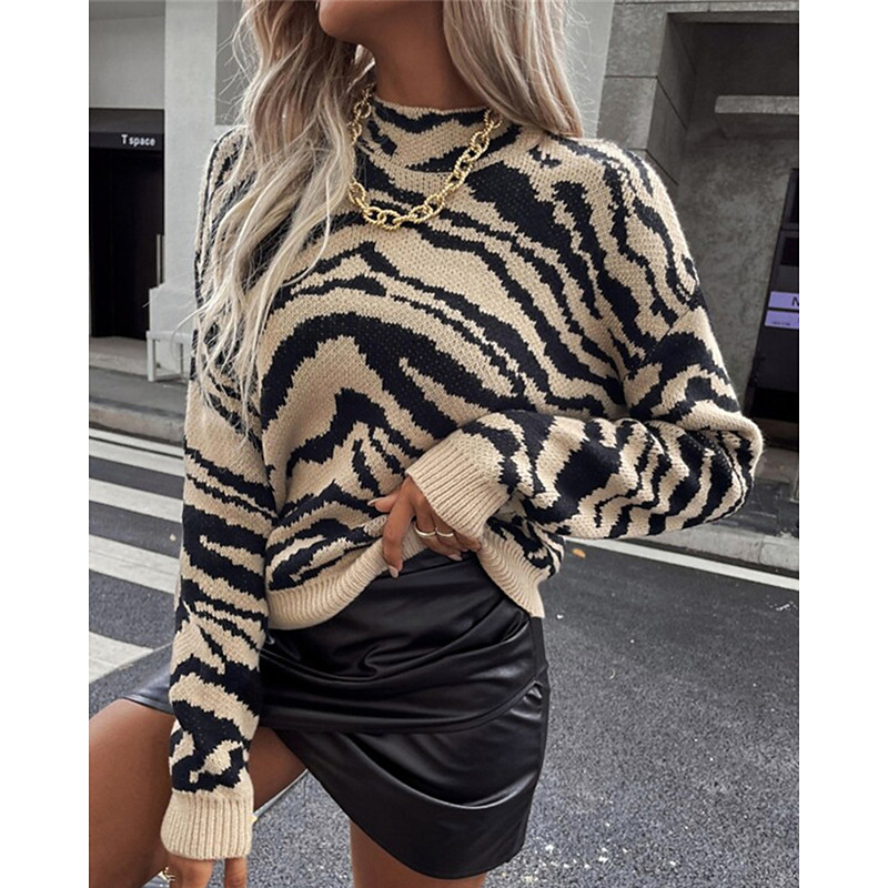 Women's Sweater Fashion Streetwear Casual Striped Ribbed Crew Neck Knitted Long Sleeve Regular Tops Knit Outdoor Daily Weekend White Apricot Fall Winter
