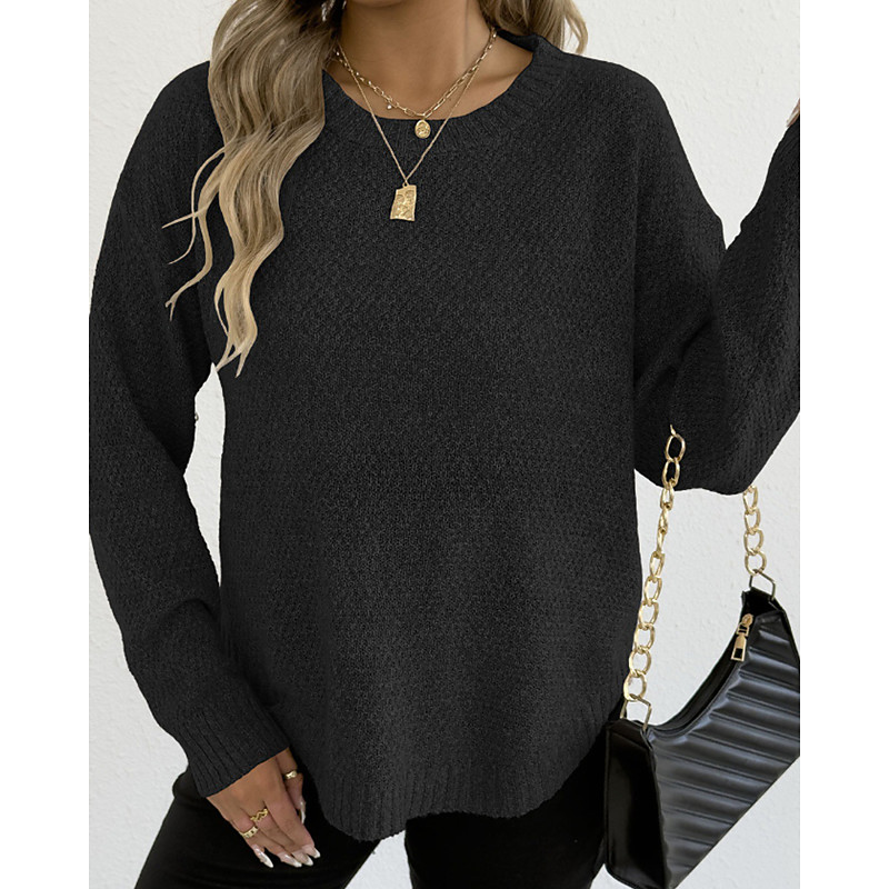 Women's Sweater Pullover Streetwear Casual Solid Color Crew Neck Knitted Long Sleeve Regular Tops Knit Holiday Going out Weekend Black Wine Fall Winter