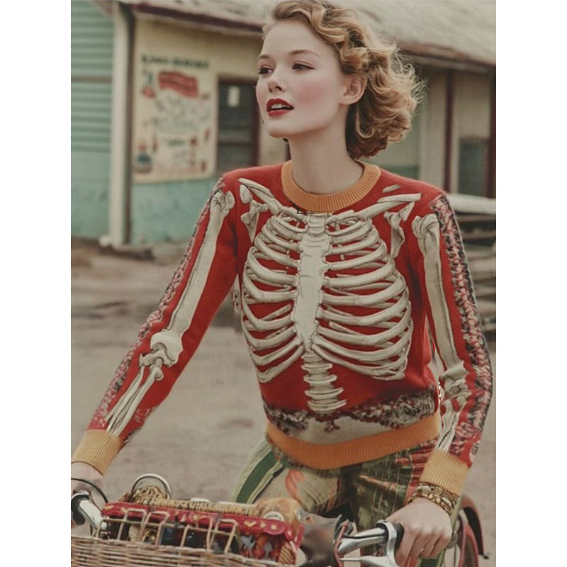 Women's Sweater Skeleton Fashion Casual Graphic Skeleton Crew Neck Knitted Long Sleeve Regular Tops KnitRed Blue Fall Winter