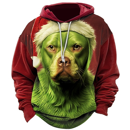 natale uomo natale animale 3d felpe con cappuccio grafica cane stampe quotidiano classico casual 3d pullover festa indossando cappello da babbo natale cotone verde