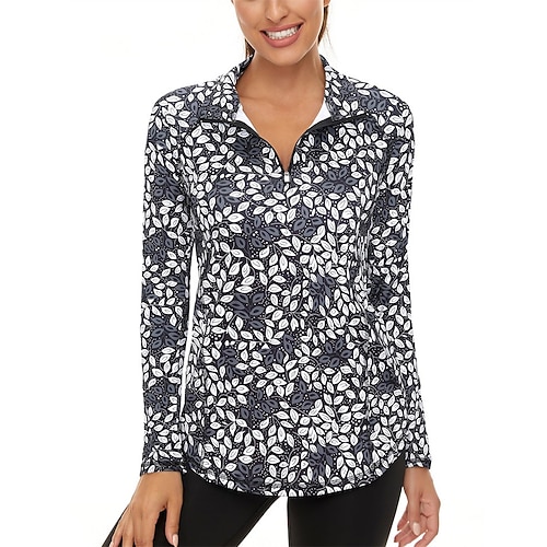 Per donna Floreale Polo da golf Maglia da tennis Manica Lunga Stampato Zip a un quarto Pullover Protezione UV Elastico Traspirante Tennis Golf Pickleball Collo con zip Maglietta Polo Rosa Blu Grigio
