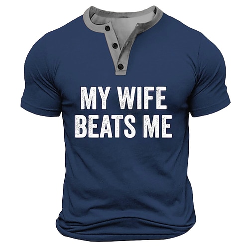 T-Shirt Henley a Maniche Corte Divertente da Uomo Mia Moglie Mi Picchia Umorismo Relazionale Tee Grafica