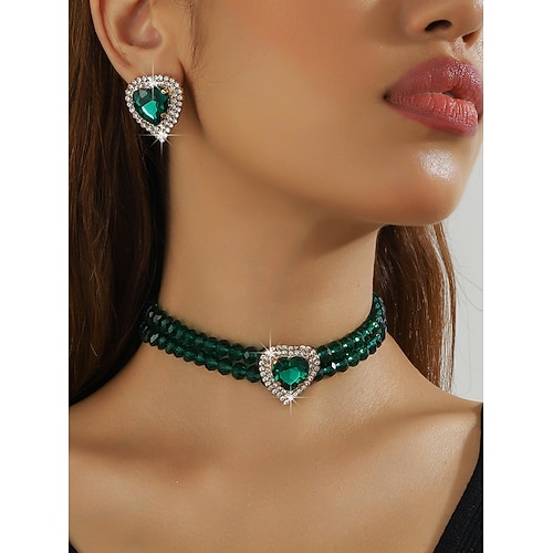 collana girocollo in cristallo champagne da donna set di orecchini a bottone, gioielli con strass a forma di cuore, elegante stile romantico per la serata di San Valentino