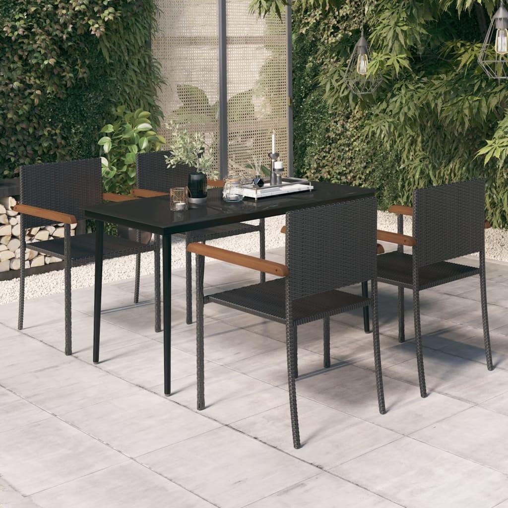 Spisebordssæt til haven 5 dele sort