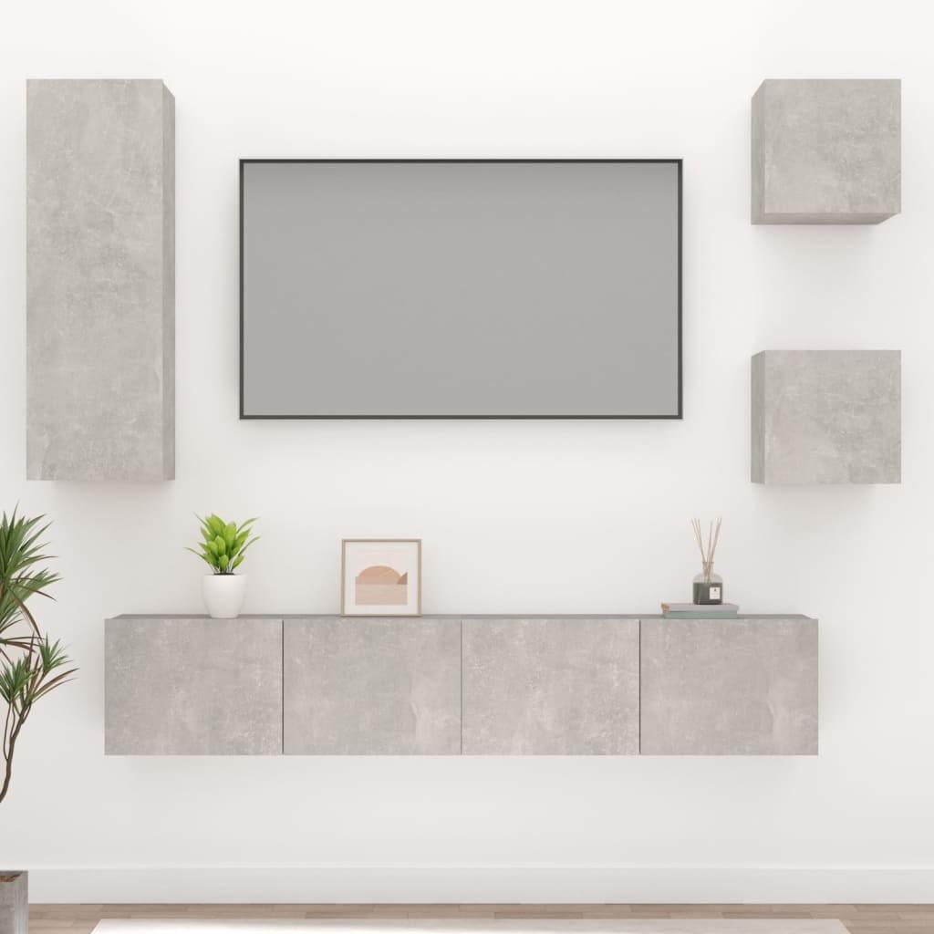 Tv-skabssæt 5 dele konstrueret træ betongrå