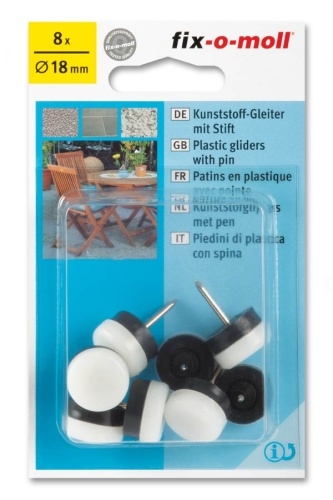 Kunststoffgleiter mit Stift rund 18mm weiß fix-o-moll
