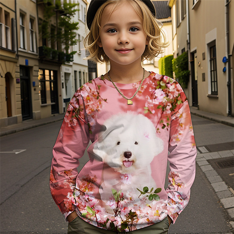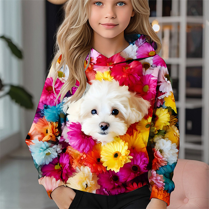 Girls' 3D Floral Dog Hoodie Long Sleeve Fall Winter Fashion Adorable Basic Kids 4-12 Years Hooded Outdoor Casual Daily Regular Fit