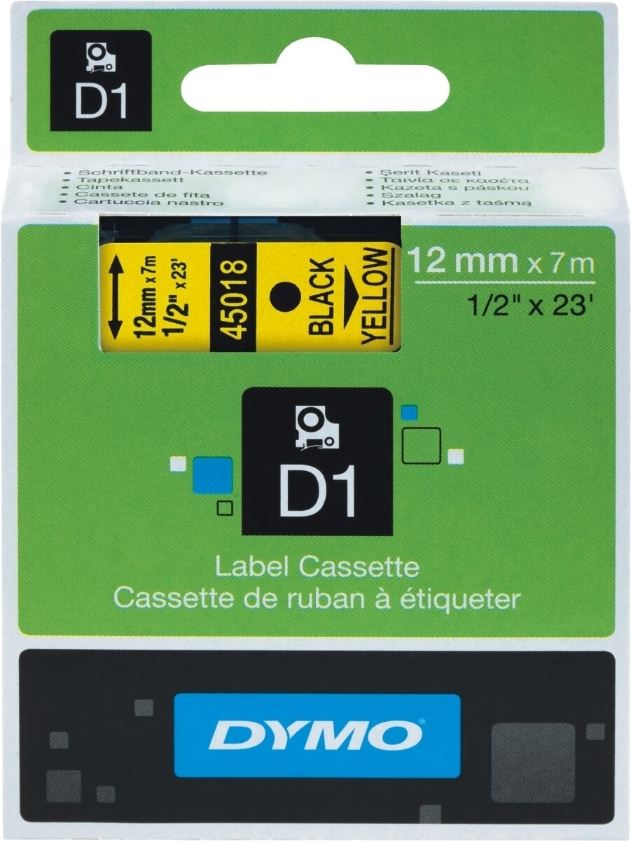 DYMO D1 - Standardetiketten - Schwarz auf Gelb - 19mm x 7m, Schwarz auf gelb, Polyester, Belgien, -18 - 90 °C, DYMO, LabelManager, LabelWriter 450 DUO
