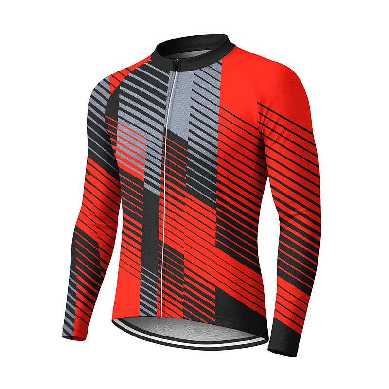 Men Cycling Jersey Downhill Jersey Geometric Abstract Contrast Color Long Sleeve Bike Tee Tshirt Jersey Compression Clothing with 3 Rear Pockets Mountain Bike MTB Road Bike Cycling UV Sun Protection