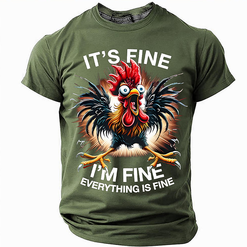 It's Fine I'm Fine Everything Is Fine Funny Rooster Men's Graphic T-Shirt Short Sleeve Meme Tee