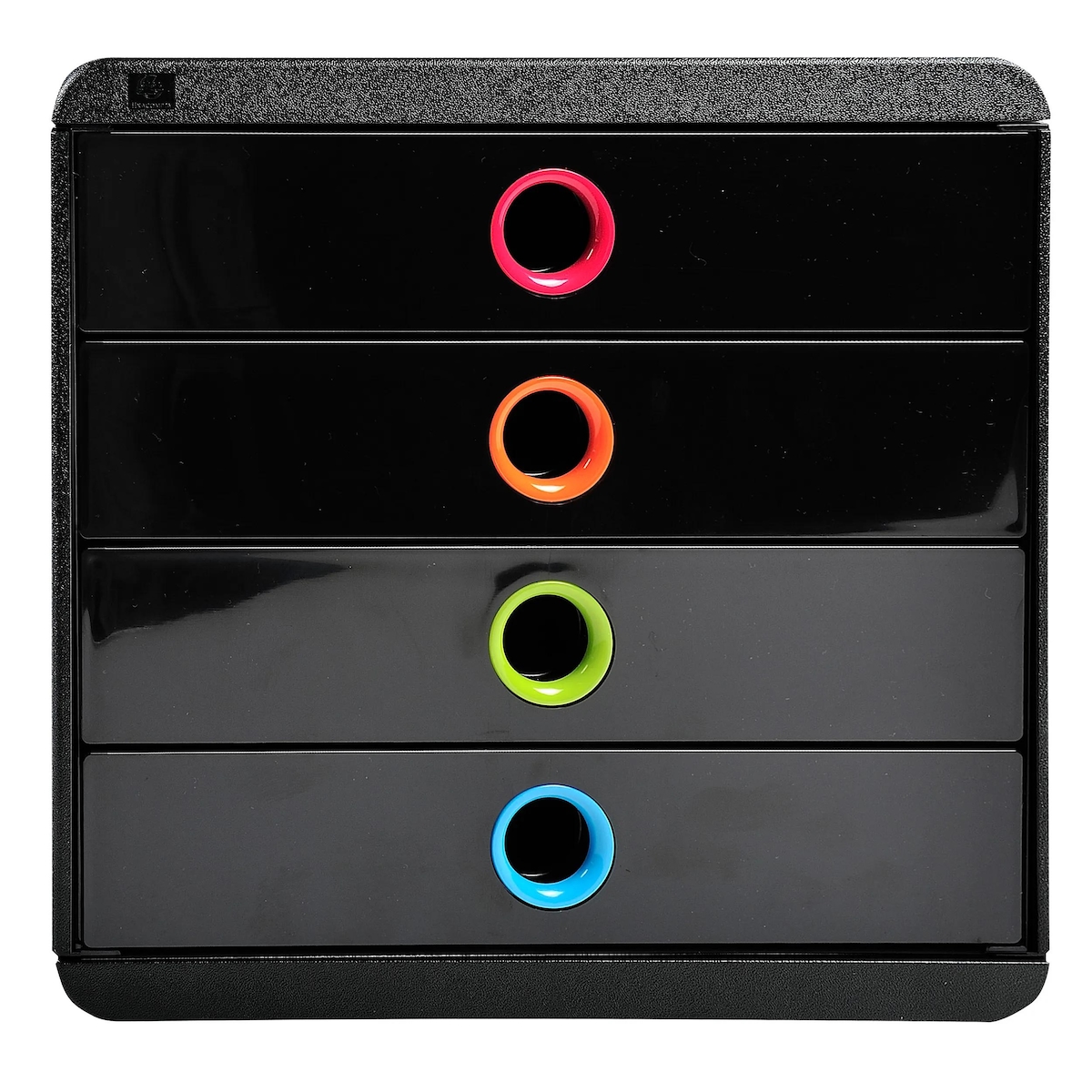 Exacompta 314498D 1x Schubladenbox POP-BOX mit 4 geschlossenen Laden - Schwarz/Harlekin