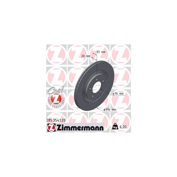 Jarrulevy Tuuletettu, ulko, Taka-akseli Zimmermann 285.3541.20 - hyundai i30, i30 fastback, kona - OE 58411-K9500, 58411-S0500