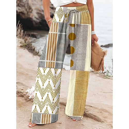 Per donna Culotte Gamba Larga Gamba larga Chinos Vacanza Vintage Stile Etnico Lunghezza intera Vita Alta Grafico Sfumatura A righe Asciugatura Rapida Traspirabilità Morbido Inelastico Formale