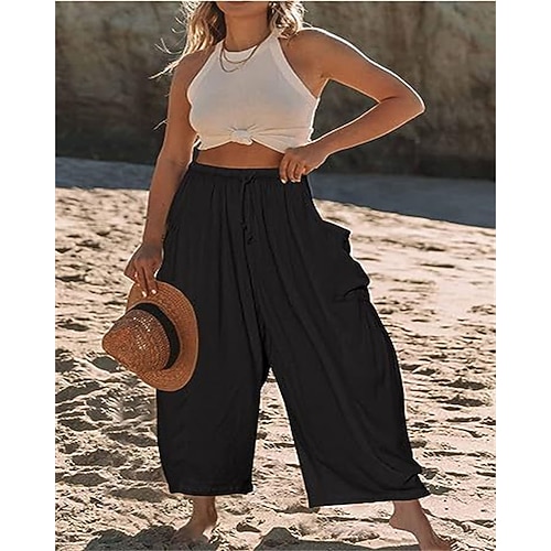 Per donna Culotte Gamba Larga Gamba larga Chinos Elegante Vacanza Streetwear Lungo Vita Alta Semplice Tasca Elastico in vita Design con Coulisse Elastica Confortevole Traspirante Inelastico