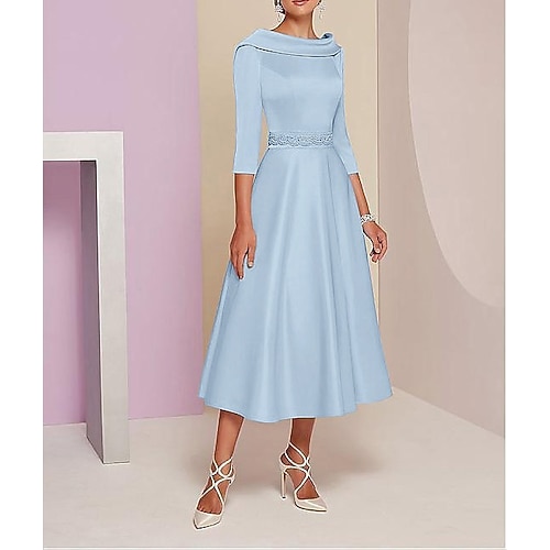 Linea ad A Lunghezza Tè Vestito da Festa Abito da Cocktail Abito da invitata a nozze Abito da cerimonia per signora Manica 3/4 Scollo a Barca Elegante Vintage Cocktail Formale Ospite di nozze Raso con