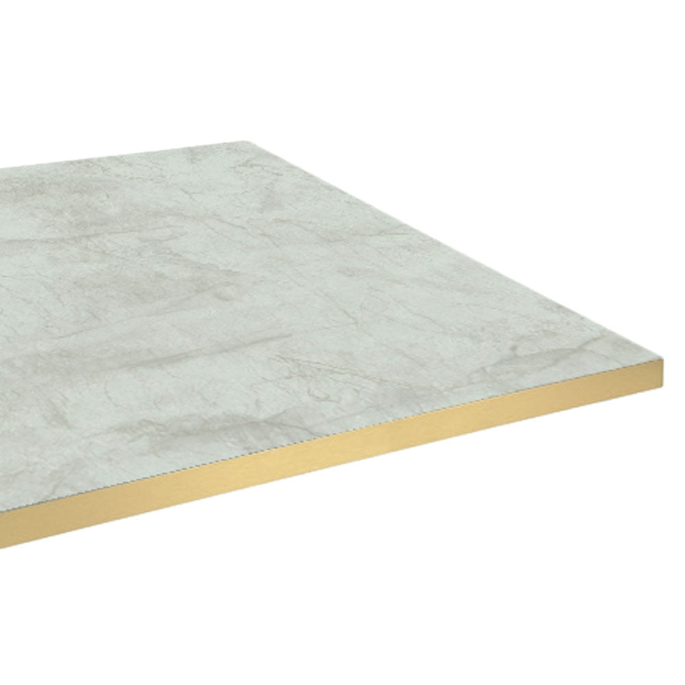 RestooTab - Tischplatte 60x60 Dekor Marmor perla Kanten messingfarben