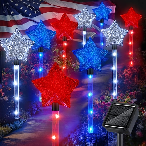 patriotische Solarleuchte für den Außenbereich, rot, weiß Blaue Stern-Gartenleuchten, wasserdichte LED-Bodenleuchten für den 4. Juli, den 250. Unabhängigkeitstag, den Gedenktag, Garten, Hof, Rasen,