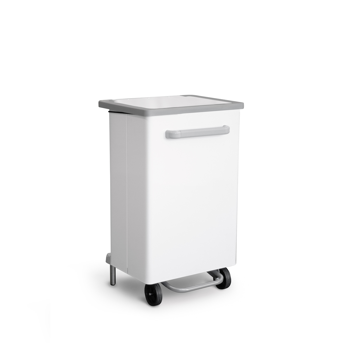 Stil Casa Pedalabfalleimer für die Mülltrennung, lackierter Stahl, 47 x 37 x h. 83 cm, Frontöffnung, Sackhaltergummi, 90 Liter, weiß.