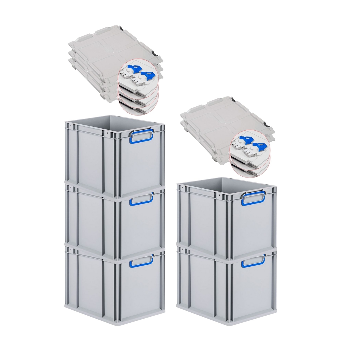 PROREGAL 5x Eurobox NextGen Color mit Scharnierdeckel & Verschlüssen | HxBxT 22x30x40cm | 30 Liter | Griffe blau geschlossen | Glatter Boden