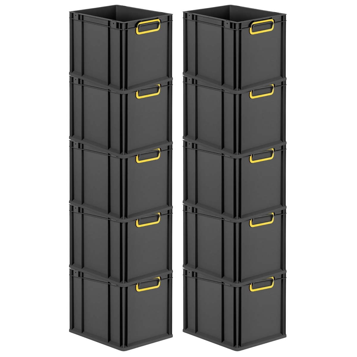 PROREGAL SparSet 10x Eurobox NextGen Color, HxBxT 32x30x40cm, 30 Liter, Griffe gelb zu, Schwarz, Eurobehälter, Transportbehälter